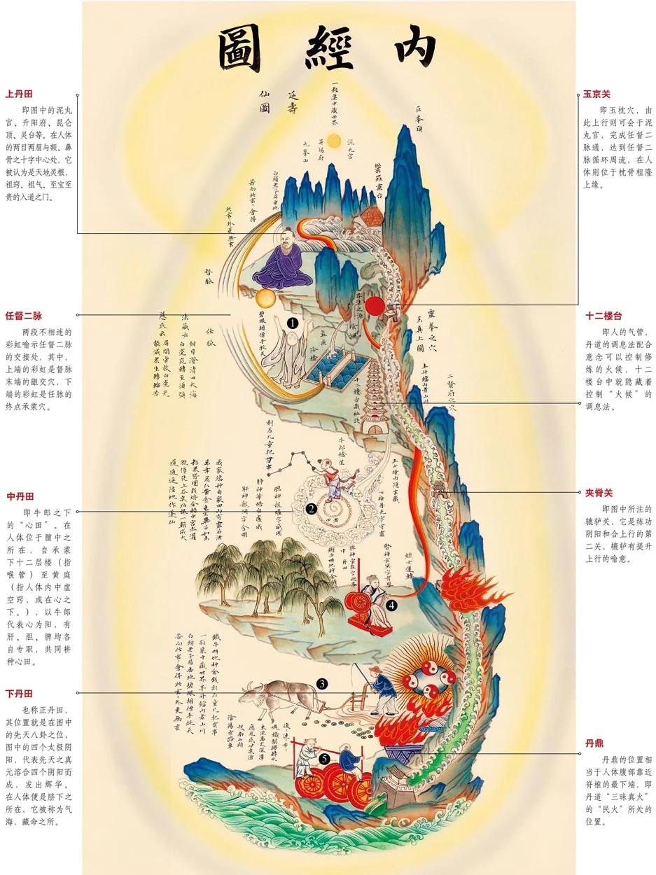 提醒一下,在密宗的修练中,有灵蛇之说的。我以前在网上看到过这张图,现在找不到了。这图与内经图所标注的是一样的。